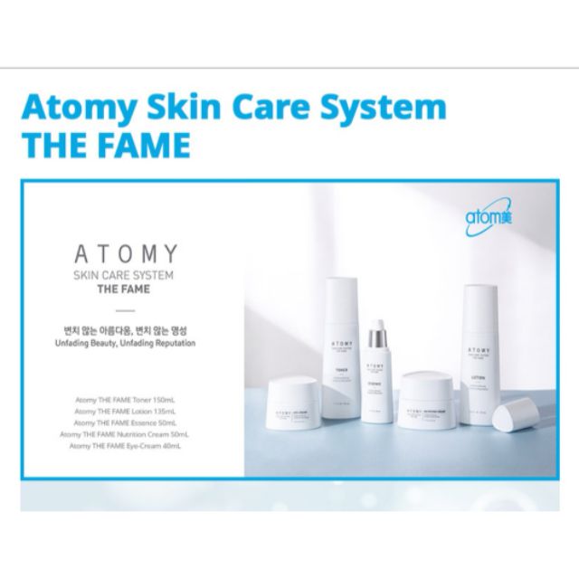 Hydrate and soothing effects atomy the fame toner... Deliver nutritions deep into the skin atomy the fame essence. Embraces the skin to achieve balance atomy the fame lotion.. Atomy skin care system is also known as atomy skin care the fame, is a new skin care product improved from the joint technologies of kaeri and kolmar korea.